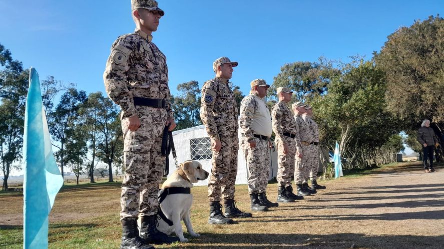 Agentes del Servicio Penitenciario Bonaerense (SPB) del Departamento Descentralizado de la Dirección de Cinotecnia vivieron con emoción el acto en compañía de autoridades del Complejo Zona Centro Sur.