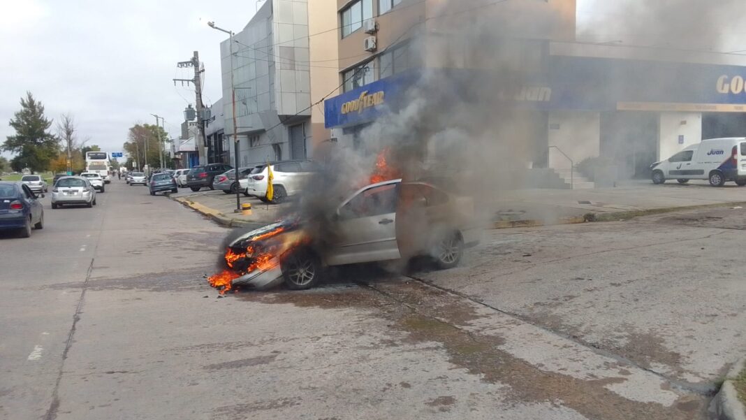 El conductor del auto, un Volkswagen Polo, percibió al andar unas llamas en el motor, por lo que frenó y descendió para resguardarse. De inmediato el fuego avanzó y destruyó el rodado de manera total.