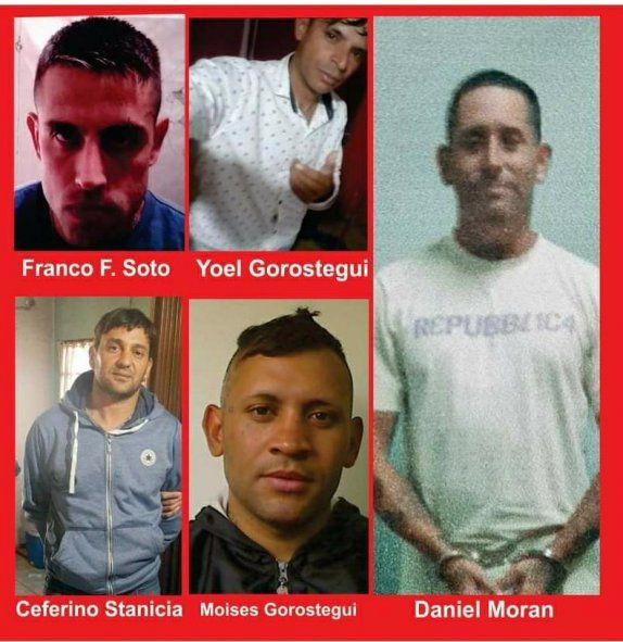 Los prófugos fueron identificados como Javier Moises Gorostegui y Yoel Gorostegui, detenidos por robo agravado; Franco Fabián Soto Acevedo, por robo; Julio Daniel Morán, por hurto, y Ceferino Jesús Stanicia, por resistencia a la autoridad, todos a disposición de la Justicia de Tres Arroyos.