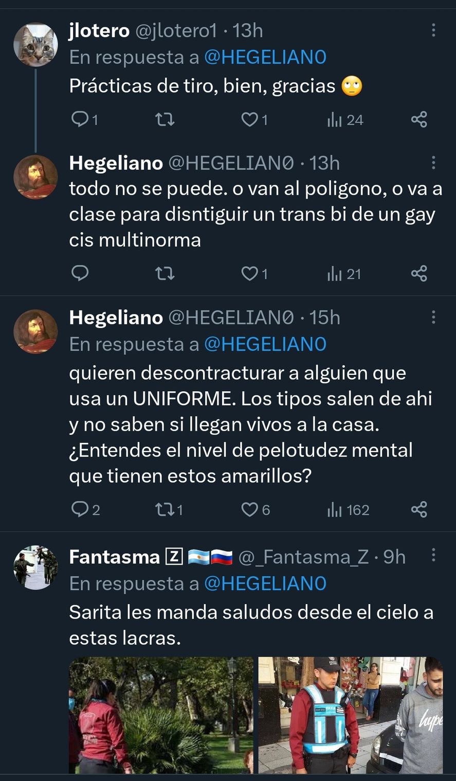 – Merecemos la extinción. La Policía de la Ciudad hizo un encuentro de seguridad y justicia con perspectiva de género. Fue, según un comunicado, para liberar energía de las articulaciones. Mientras los narcos y los chorros tiran con ametralladoras…