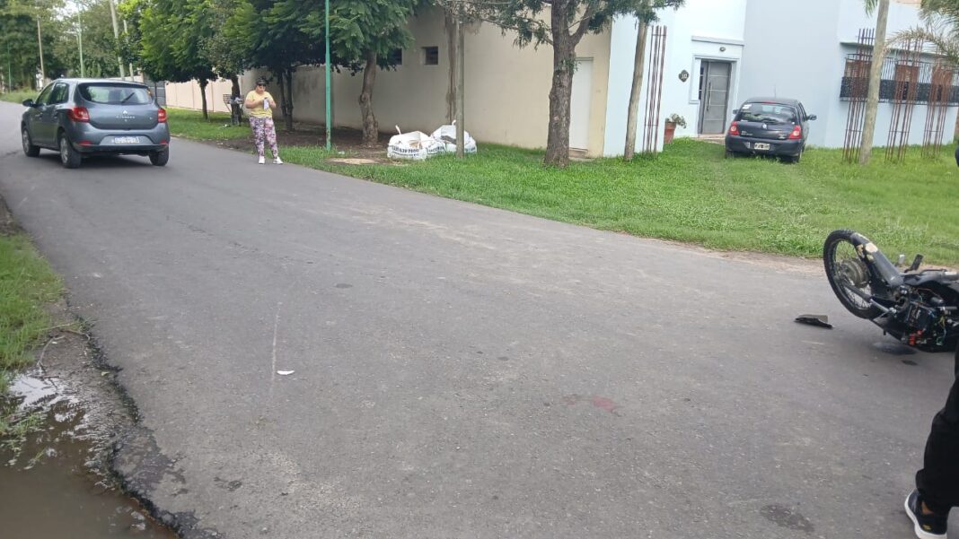 El incidente vial se produjo en el cruce de 34 y 136, en el barrio San Carlos cuando colisionaron un auto Renault Sandero y una moto Mondial de 110 de cilindrada.