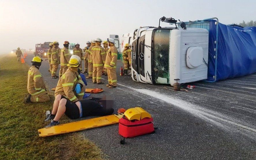 Según publicó Infozona, Bomberos Voluntarios de la zona, personal de AUBASA, ambulancias del Same y efectivos de la Policía Vial trabajan en el lugar.