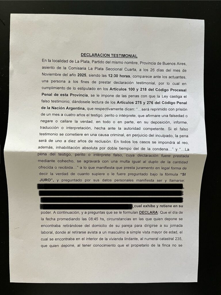 Una de las vecinas, aún indignada por lo ocurrido, contó a INFOCIELO que la denuncia quedó radicada formalmente.