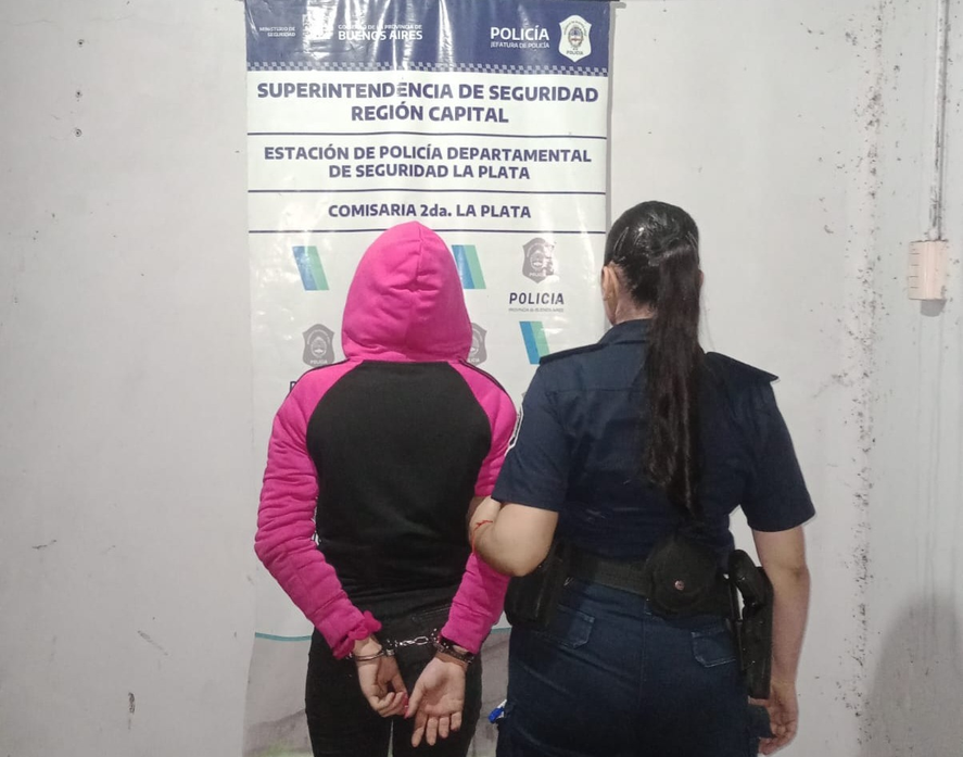 Minutos después llegó un patrullero de la Policía bonaerense y los efectivos procedieron a demorar a la joven por el delito de “daños” al romper las escobillas del limpiaparabrisas y el espejo retrovisor del auto.
