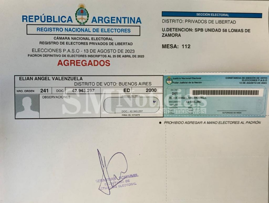 A las 9 de la mañana, el cantante de Cumbia 420 fue trasladado desde la sede de la Delegación Departamental de Investigaciones (DDI) de Quilmes, donde permanece detenido desde el 6 de junio, hasta la Unidad Penitenciaria N°58 de Ingeniero Budge, partido de Lomas de Zamora, donde sufragó.
