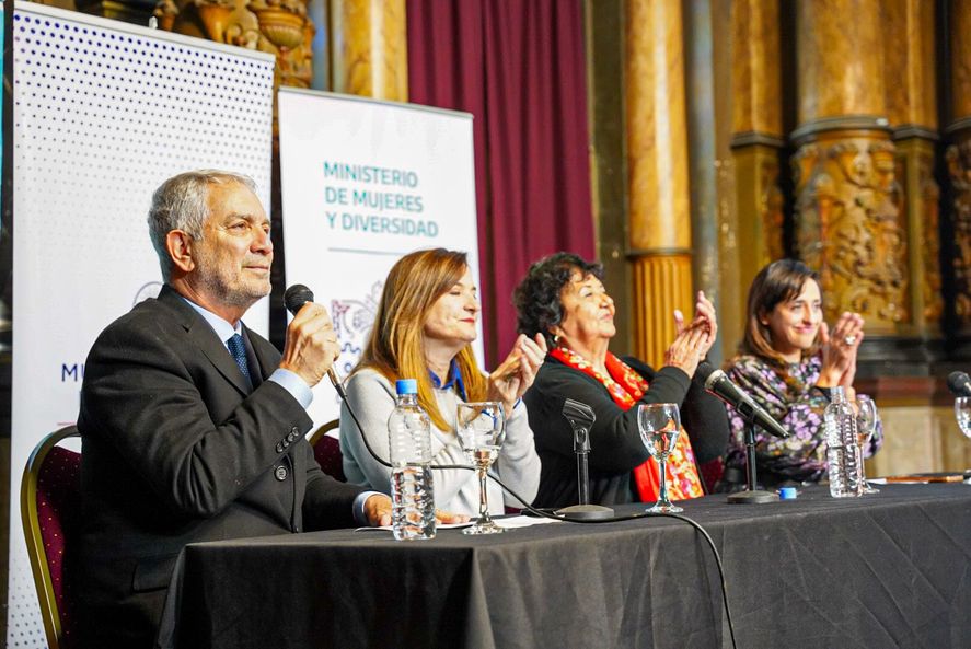 Acompañados por la presidenta honorífica de la Escuela de Género, Gobierno y Comunidad, Dora Barrancos, y la secretaria de Mujeres y Diversidad, Silvina Perugino, el jefe comunal y la titular de la cartera provincial presentaron los detalles de la capacitación, que estará destinada a funcionarias y funcionarios del poder ejecutivo municipal.