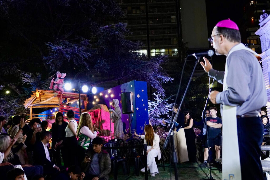 La actividad comenzó con la bendición del pesebre municipal, a cargo del obispo auxiliar de la Arquidiócesis de La Plata, Jorge González. La ceremonia contó con la presencia de funcionarios del gabinete y familias que se acercaron para presenciar el evento.