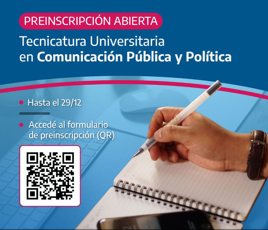 La carrera “Comunicación Pública y Política” es una tecnicatura universitaria que consta de 28 materias, y se cursa con un tiempo estipulado de 3 años. Plantea en el contenido de sus materias una fuerte formación en teoría política y del Estado y en el diseño de contenidos y estrategias comunicacionales.