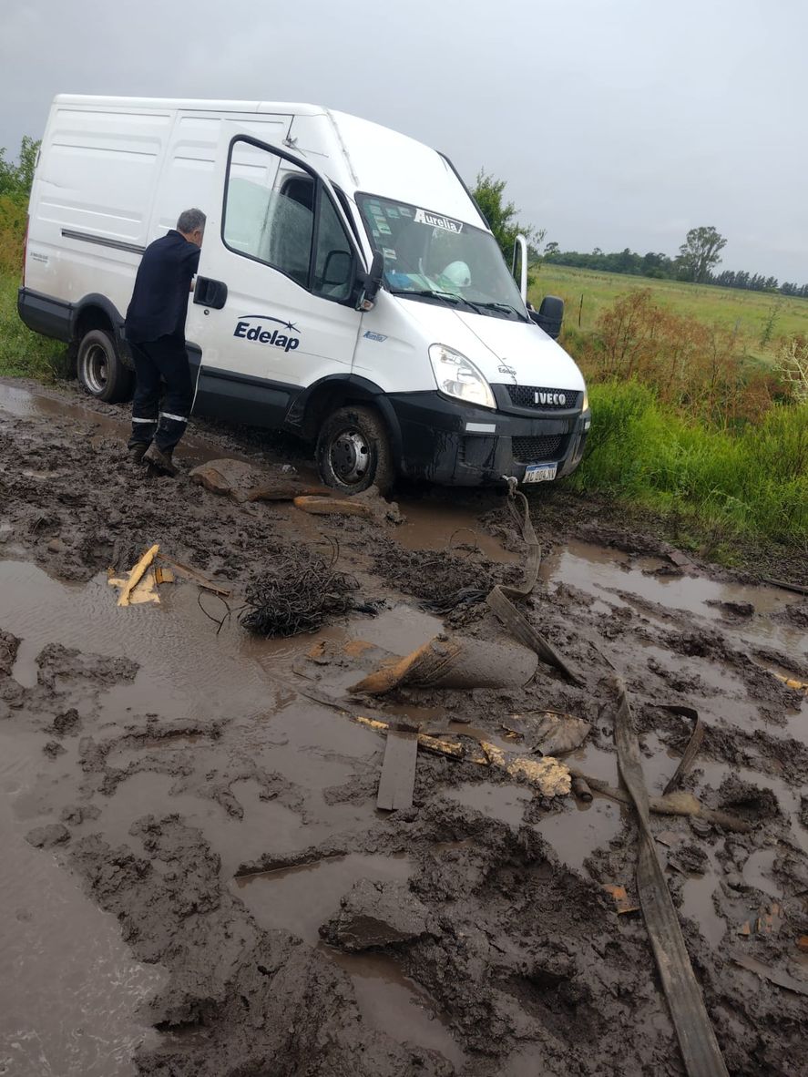El operativo de emergencia se despliega en las más difíciles condiciones, en algunos sectores las tareas se complican por anegamientos y calles con difícil acceso o intransitables como es el caso de Ruta 36 y 708 (Poblet) donde un vehículo de la empresa debió ser movilizado con un tractor para acceder al lugar de trabajo.