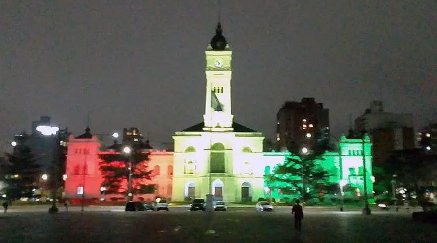 Para conmemorar los 199 años de la independencia de Bolivia que se cumplieron el último martes, la Municipalidad de La Plata iluminó con luces rojas, amarillas y verdes, el Palacio Municipal de La Plata de calle 12 emulando la bandera del país vecino.