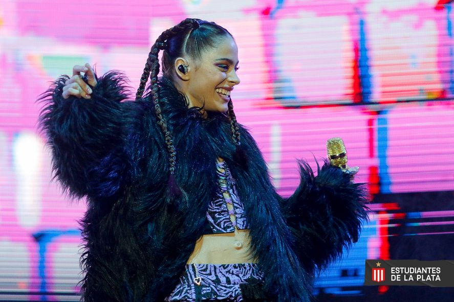 La cantante hizo su brillante presentación en el estadio UNO del club Estudiantes de La Plata, en Avenida 1 y calle 57, siendo este el primer recital desde la reinauguración de la cancha del Pincha, el 9 de noviembre del 2019. En esta línea, la artista de música urbana también recibió la camiseta albirroja, de la mano Martín Gorostegui, presidente de la institución.