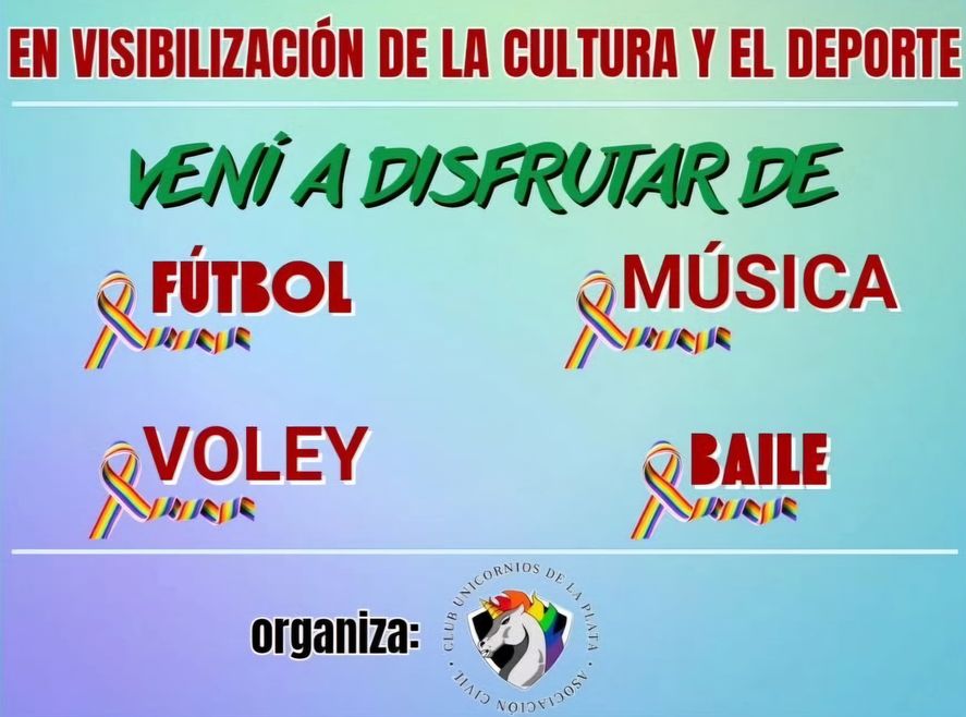 El evento es organizado por la Fundación M.A.KOM, y contará con la participación del #primerequipo de fútbol LGBT de la ciudad, “Unicornios” de La Plata.