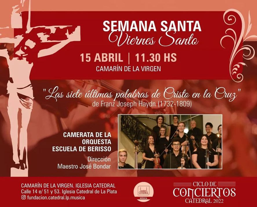 El próximo viernes 15 de abril a las 11.30 horas, la Camerata de la Orquesta Escuela de Berisso interpretará “Las Siete últimas palabras de Cristo en la Cruz” de Haydn, dirigida por el Mtro. José Bondar.