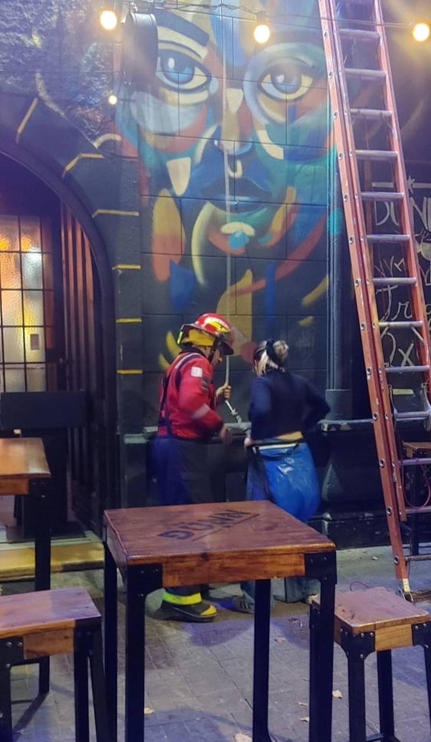 Como se puede observar en las imágenes, dos de los trabajadores fueron evacuados por escalera. Mientras que una de las empleadas fue descendida por la fachada del local, ya que no tenía fuerzas debido a que estuvo expuesta durante tres horas a bajas temperaturas. Para poder sacar a esta mujer del techo, los efectivos tuvieron que utilizar un triángulo de rescate.
