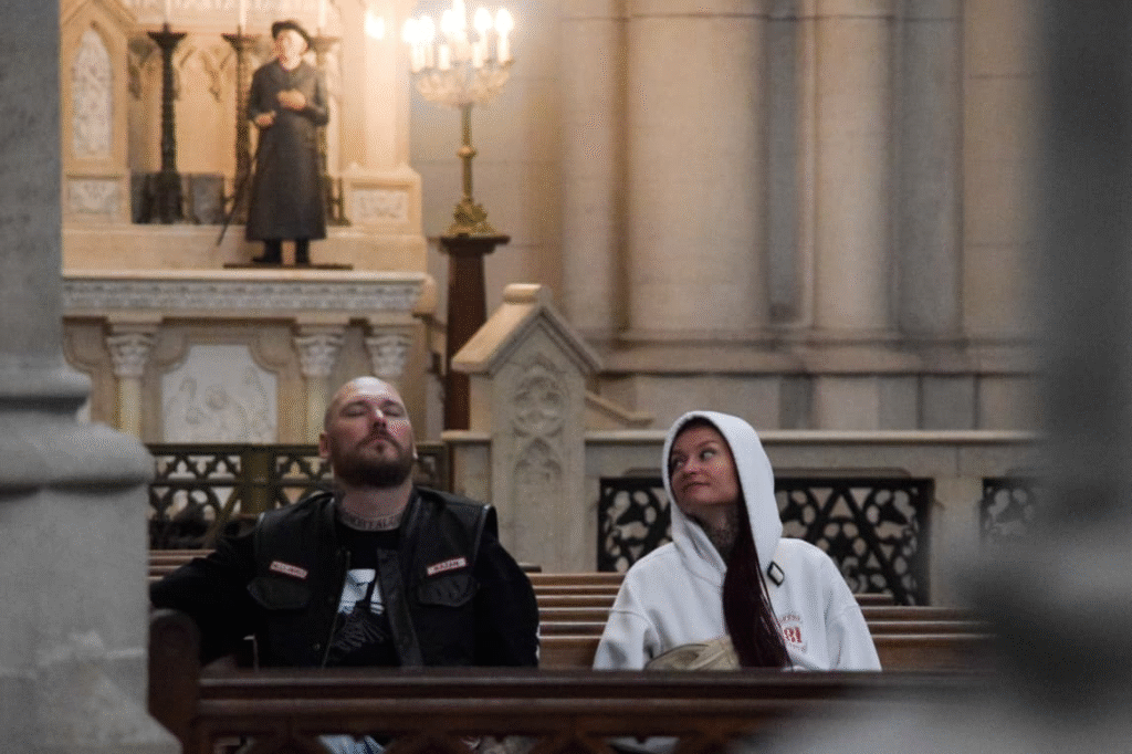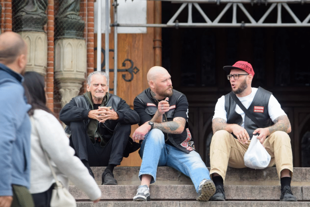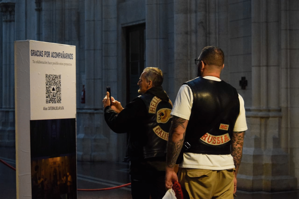 Dentro del templo católico, los Hell’s Angels tomaron fotos y pasaron un momento.