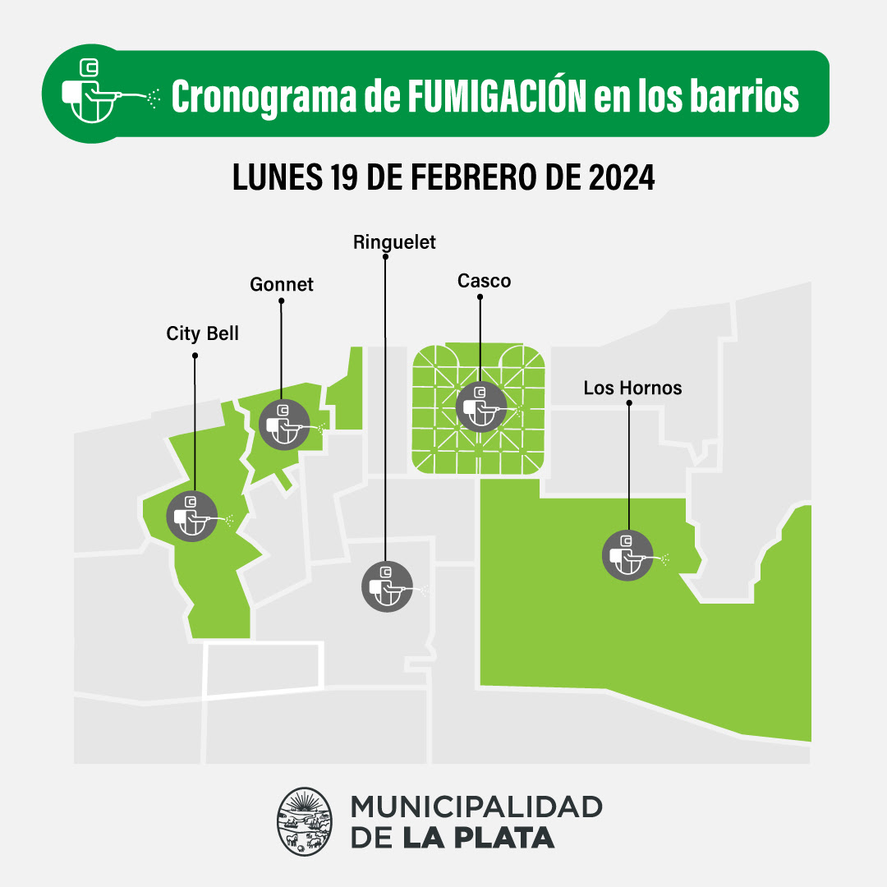 La Municipalidad de La Plata trabajará este lunes en Los Hornos, Gonnet, Ringuelet, City Bell y el casco urbano para evitar la reproducción y proliferación de mosquitos transmisores de enfermedades.