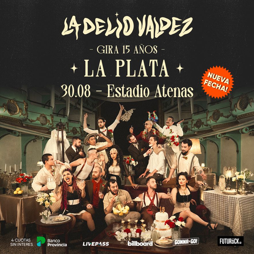 La Orquesta de cumbia latinoamericana “La Delio Valdez” celebra 15 años de trabajo cooperativo y musical con gira internacional primero por Europa y luego por Argentina, Chile y Uruguay. Los festejos de esta primera parte se coronarán el 23 de Noviembre en el Estadio Ferro Carril Oeste. En la ciudad de La Plata se presentarán el sábado 31 de agosto en el Estadio Atenas, pero. a causa del increíble éxito que llegó a agotar las entradas en pocas semanas, la banda de cumbia familiar ya tiene fecha para un segundo show en la capital provincial.