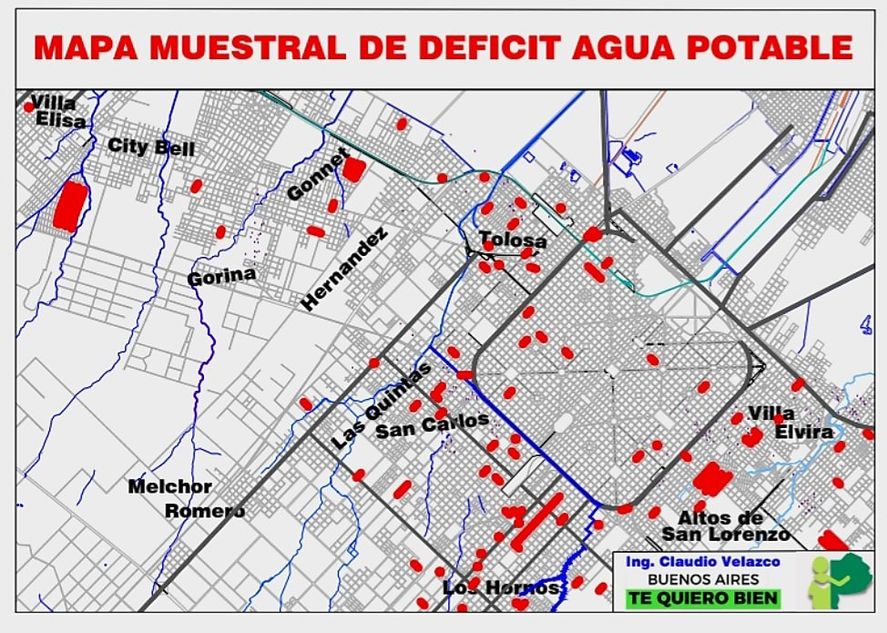 Un ingeniero realizó un mapa muestral del déficit de agua potable en la ciudad de La Plata. Dicho mapa se pudo lograr en base a los reclamos de cientos de vecinos.
