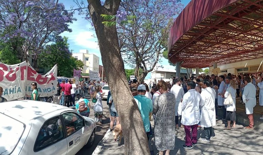 Docentes y profesionales de la salud municipal realizaron este jueves en Bahía Blanca un paro de actividades, que confluyeron en una movilización por la mañana hasta la puerta del Hospital Municipal.