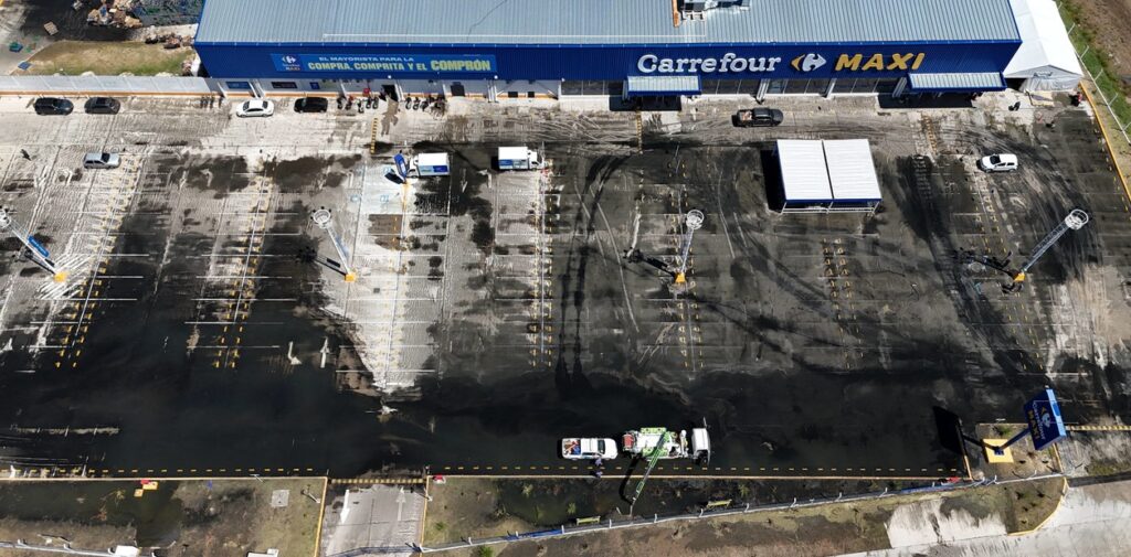 El nivel del agua comenzó a subir de manera visible entre las 6 y las 7 de la mañana, generando un fuerte olor cloacal en toda la zona. El agua contaminada llegó incluso hasta la entrada de un hipermercado cercano, que permaneció cerrado durante la jornada mientras se realizaban tareas de limpieza.
