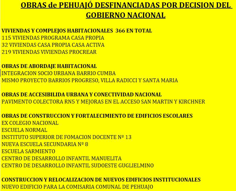 Minutos después dio a conocer un listado con las obras nacionales que frenó la gestión libertaria en Pehuajó.