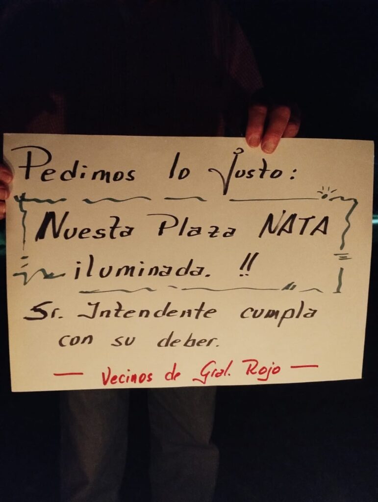 En las últimas horas, la comunidad ubicada a la vera de la Ruta Nacional 188 se movilizó ante la noticia del corte en la iluminación de la “Plaza José Natta” que la cooperativa eléctrica implementó ante una presunta orden del municipio.