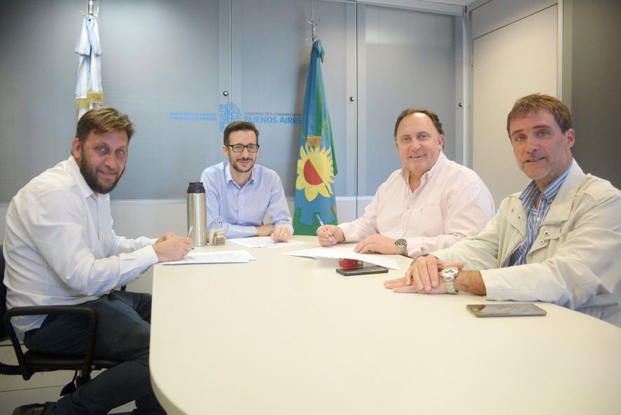 En la mañana de ayer, el ministro de Hábitat y Desarrollo Urbano de la provincia de Buenos Aires, Agustín Simone, firmó un convenio con el intendente de General Las Heras, Javier Osuna, para construir 61 viviendas en esa localidad bonaerense. También participaron del encuentro el administrador del Instituto de la Vivienda, Diego Menéndez, y el secretario de Obras Públicas del municipio, Atilio Bottazzi.