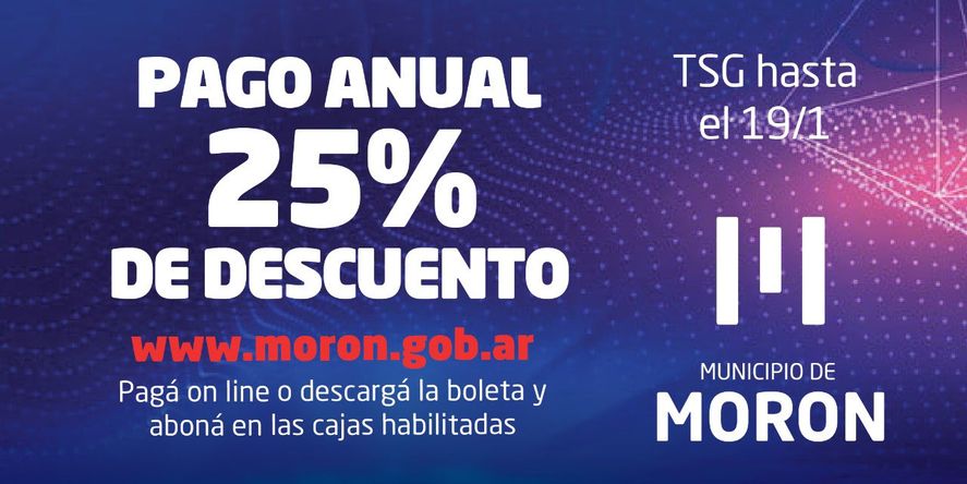 El Municipio de Morón ofrece la posibilidad de realizar el pago anual de las tasas con hasta un 25% de descuento.