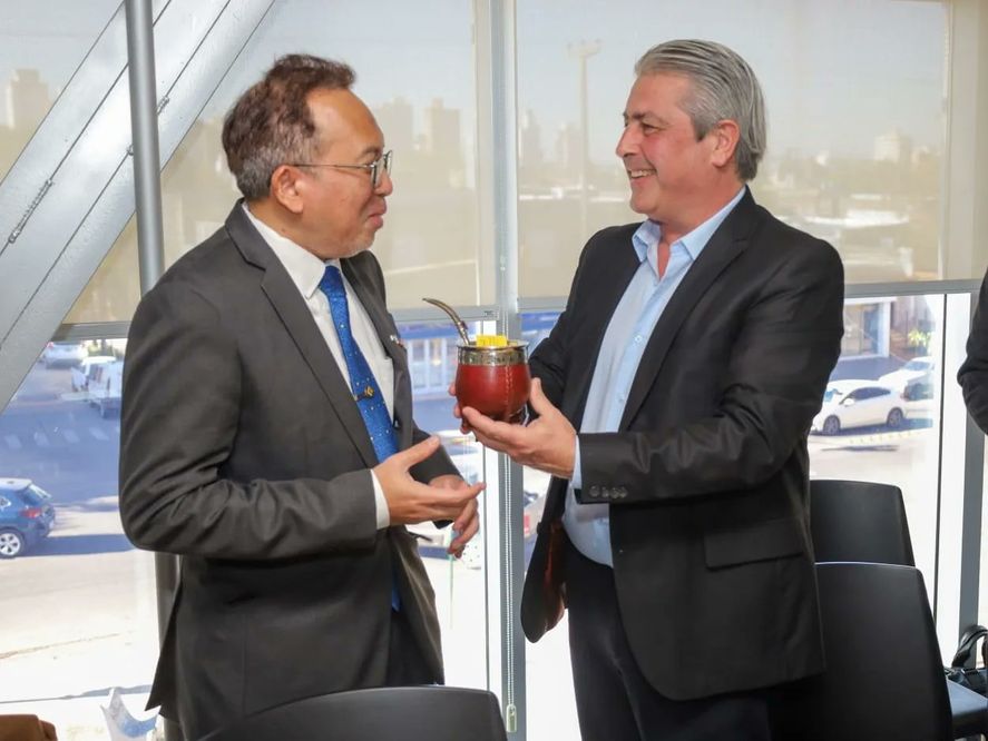 “Nuestra región tiene mucho para dar hacia el mundo y es un gran desafío y una linda oportunidad que hayan venido a conversar con nosotros con el objetivo de idear proyectos y planificar actividades que darán crecimiento y visibilidad a nuestra ciudad”, señaló Martínez luego del encuentro, quien le regaló un mate al Embajador.