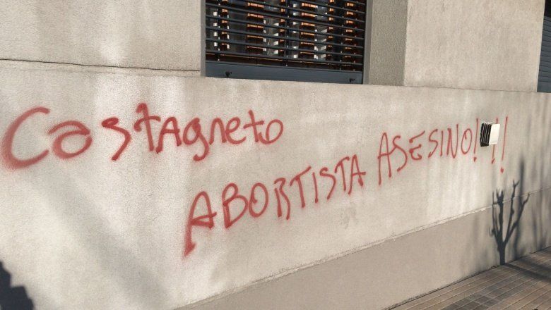 “Castagneto abortista asesino”, le escribieron con aerosol rojo en una de las paredes de su casa de La Plata, a modo de presión.