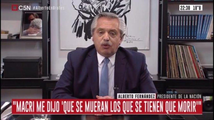 En dialogo con C5N, Alberto Fernández se dirigió a su antecesor: “Macri, para que recuerdes, la cuarentena nos permitió poner de pie un sistema de salud que vos dejaste destruido, nos permitió crear un Ministerio de Salud que vos cerraste, nos permitió poner en pie un Ministerio de Ciencia y Tecnología que vos terminaste”.