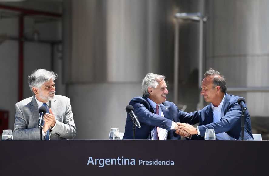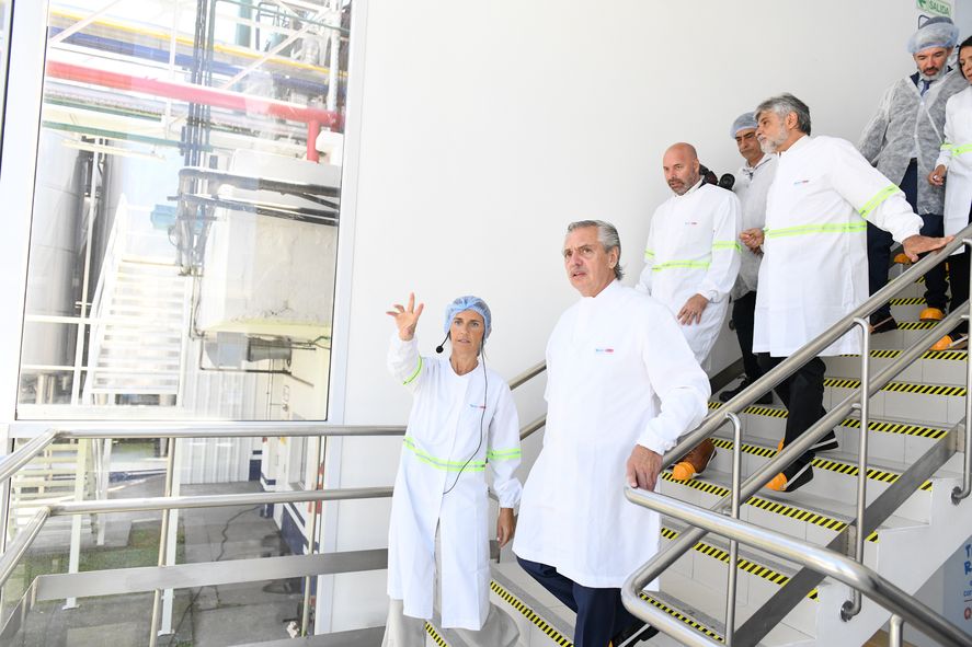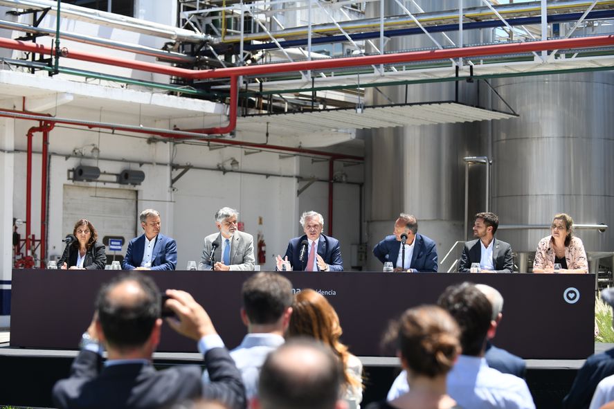 El presidente de la Nación, Alberto Fernández, encabezó este mediodía el acto de lanzamiento de un alimento con tecnología desarrollada por investigadores del Conicet, junto al ministro de Ciencia, Tecnología e Innovación, Daniel Filmus.