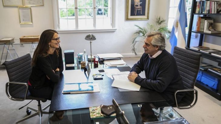 La ministra de la Mujer, Gómez Alcorta y Alberto Fernández.