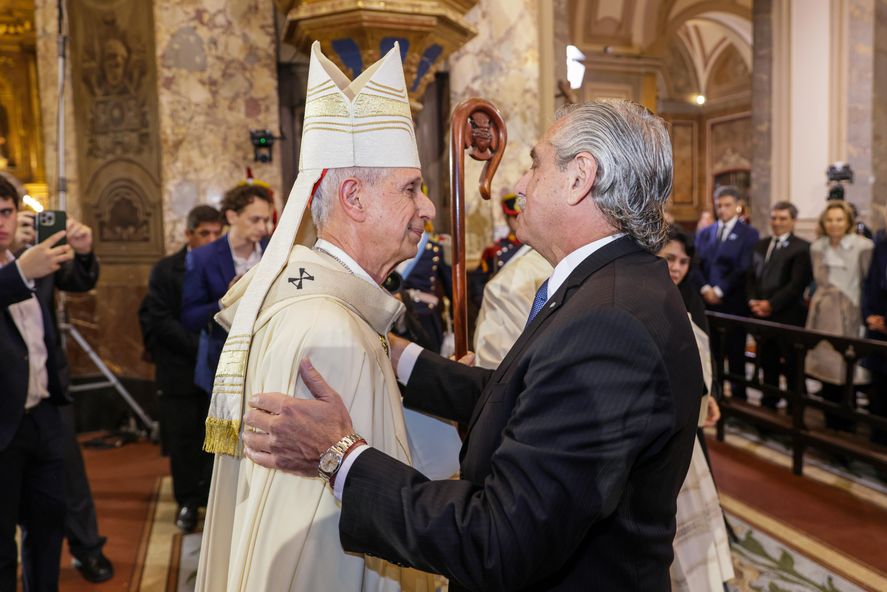 El presidente Alberto Fernández asistió esta mañana al Te Deum que ofreció el Arzobispo de Buenos Aires, cardenal Mario Poli en la Catedral Metropolitana, donde se mostró con casi todos sus ministros, incluido el de Economía, Sergio Massa.