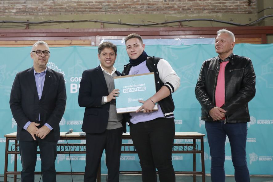 En el marco del programa Conectar Igualdad Bonaerense, el gobernador de la Provincia de Buenos Aires, Axel Kicillof, encabezó este martes el acto de entrega de 326 computadoras personales para estudiantes que cursan el último año en nueve escuelas secundarias del municipio de San Isidro.