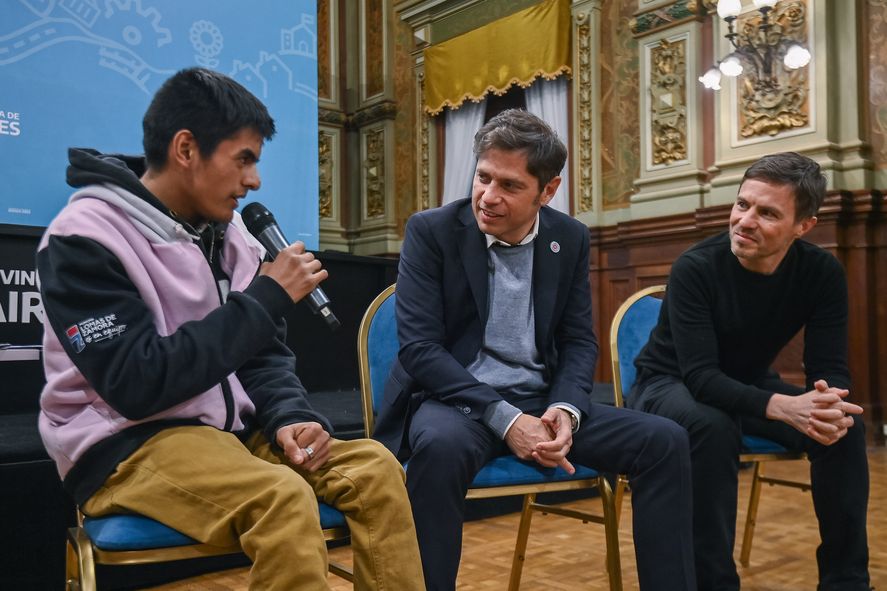 El gobernador de la provincia de Buenos Aires, Axel Kicillof, recibió esta tarde a estudiantes de una escuela de Lomas de Zamora que viajaron recientemente a Mar del Plata en el marco del programa Viaje de Fin de Curso.