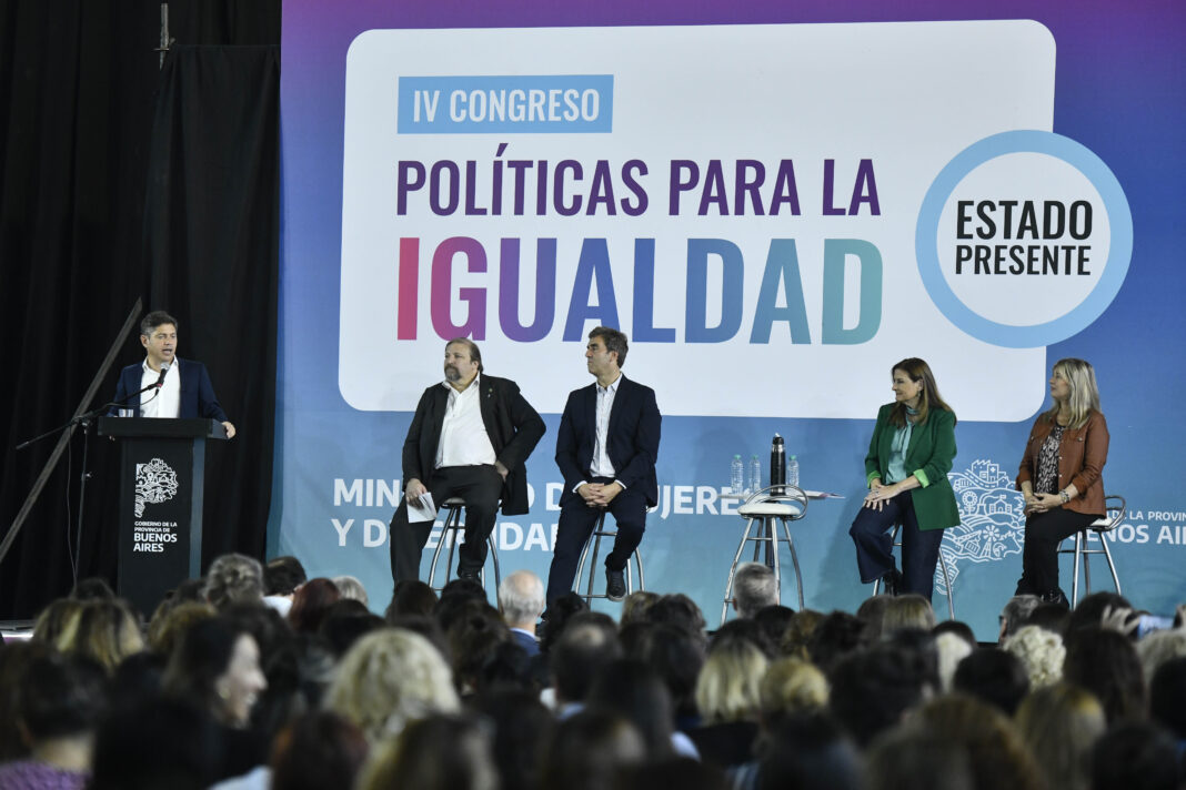 El gobernador de la provincia de Buenos Aires, Axel Kicillof, participó este jueves junto a la ministra de Mujeres y Diversidad, Estela Díaz, de la apertura del IV Congreso “Políticas para la Igualdad”.