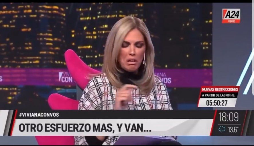 En una declaración temeraria, que podría merecer una causa penal por incitación a cometer delitos, la conductora de televisión Viviana Canosa conminó al Presidente de la República Alberto Fernández a que le agradezca “al pueblo argentino por no ir a quemarle la Casa de Gobierno“, debido al decreto que establece los 9 dias de restricciones más severas por causa de la segunda ola de coronavirus.