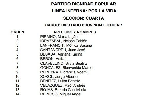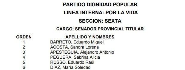 La Junta Electoral bonaerense oficializó la lista del Partido Dignidad Popular en la provincia de Buenos Aires para compulsar en las PASO. La misma lleva como pre candidato a gobernador a Santiago Cuneo y como vice a Claudio Morgado. A su vez, lleva como postulante a diputado nacional en el primer lugar al ex ministro de Planificación, Julio De Vido