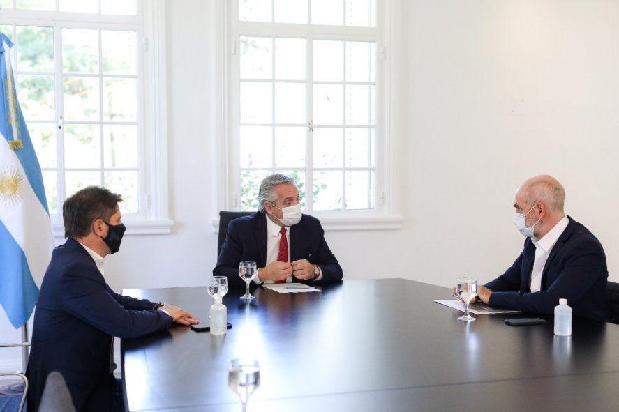El presidente Alberto Fernández convocó a una nueva reunión en Olivos a los mandatarios del Área Metropolitana de Buenos Aires: el jefe de Gobierno porteño, Horacio Rodríguez Larreta y el gobernador bonaerense Axel Kicillof.