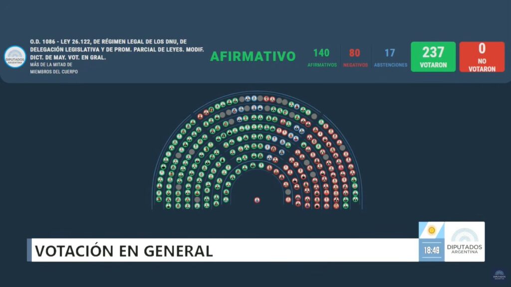 En una sesión marcada por tensiones políticas, escándalos recientes y la licencia pedida por José Luis Espert, los libertarios lograron evitar una derrota total en la Cámara de Diputados. A pesar de que la oposición consiguió aprobar por 140 votos a favor, 80 en contra y 17 abstenciones una ley que restringe con dureza la capacidad presidencial de dictar decretos de necesidad y urgencia (DNU), un artículo clave fue rechazado y el proyecto deberá volver al Senado, lo que le da aire al oficialismo y posterga un eventual veto presidencial.