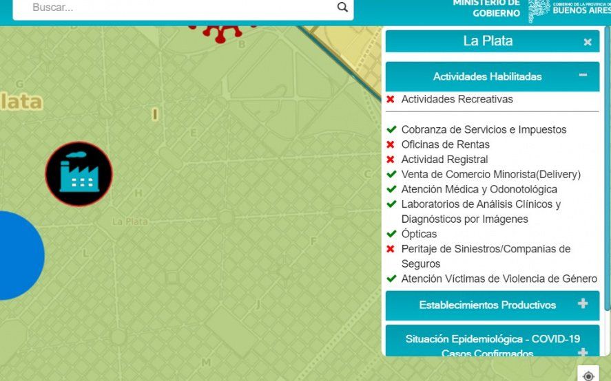 El Gobierno bonaerense lanzó en las últimas horas un mapa interactivo que permite conocer qué tipo de actividades están habilitadas en el marco de las medidas de aislamiento y cuál es la situación epidemiológica local.