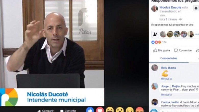 Nicolás Ducoté, de Pilar, fue el primer intendente en realizar una transimision de Facebook para dialogar de forma directa con los vecinos del distrito. El encuentro virtual estaba programado para las 10.00 de la mañana pero comenzó 10.30. Duró 30 minutos y llegó a tener 150 conexiones permanentes.