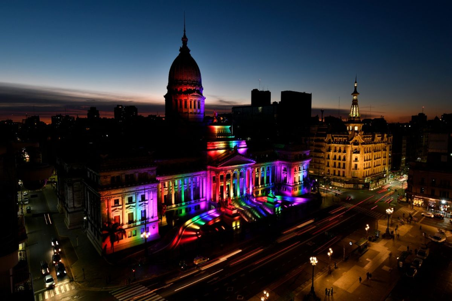 Por iniciativa de la Cámara de Diputados, que preside Sergio Massa, la fachada del Congreso de la Nación se muestra iluminada con la bandera que representa a las personas LGTBIQ y no binarias.