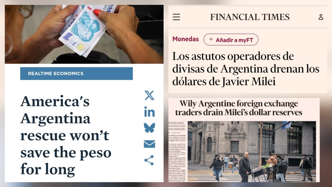 La prensa extranjera no tiene matices y es categóricamente lapidaria. Mientras el Peterson Institute for International Economics (PIIE) habla de un rescate estadounidense “insuficiente y transitorio”, el Financial Times retrata un país donde los operadores financieros “drenan los dólares del Banco Central”. Dos miradas que, aunque distintas, coinciden en lo mismo: el país camina por la cornisa.