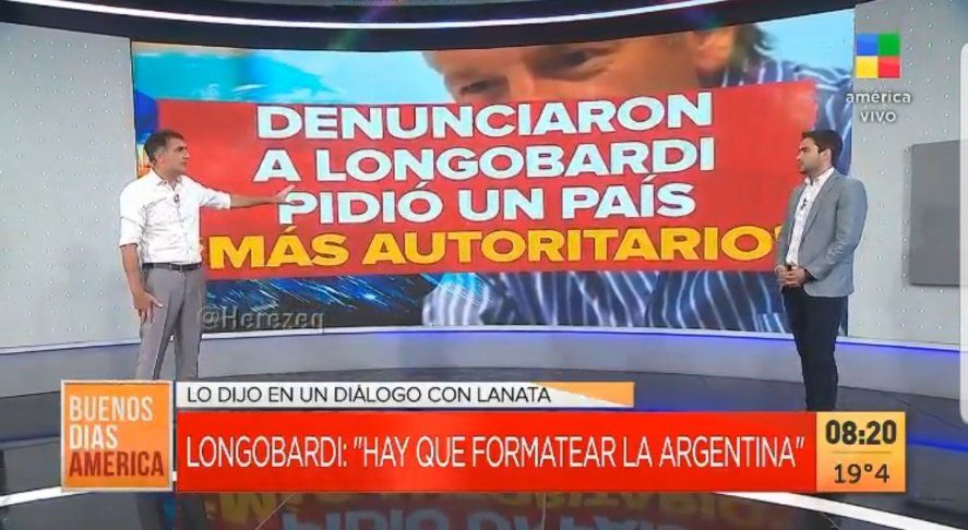 “Lo que dice Longobardi es que los líderes politicos democráticos no pudieron resolver los problemas centrales hasta el momento”,dando Antonio Laje tácitamente a entender que hacen falta líderes “menos democráticos, que sí puedan solucionar lo que el sistema no pudo hasta ahora”, según su mirada.