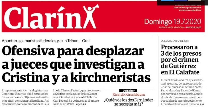 Lugones se refirió así a las tapas de Clarín y de La Nación del domingo último, en la que se imprimió “Ofensiva para desplazar a jueces que investigan a Cristina y a Kirchneristas” y “El kirchnerismo pide revisar designación de diez jueces claves”, en la que se denunció una supuesta maniobra de parte del Gobierno para –según se dijo- “garantizar la impunidad” de ex funcionarios.