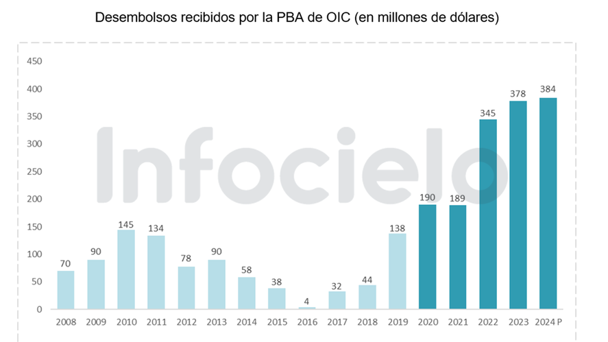 La dinámica no es una novedad para el gobierno de Axel Kicillof. Desde que asumió, a fines de 2019, recibió desembolsos por 297 millones de dólares al año en promedio. En 2024, ya asumido Javier Milei, lleva cosechados 384 millones de dólares por ésta vía. Un contraste absoluto con la gestión de María Eugenia Vidal, quien optó por financiarse a través del mercado en moneda extranjera. Según los registros, entre 2015 y 2019 la ex gobernadora “solo” recibió 218 millones de dólares por parte de organismos internacionales.