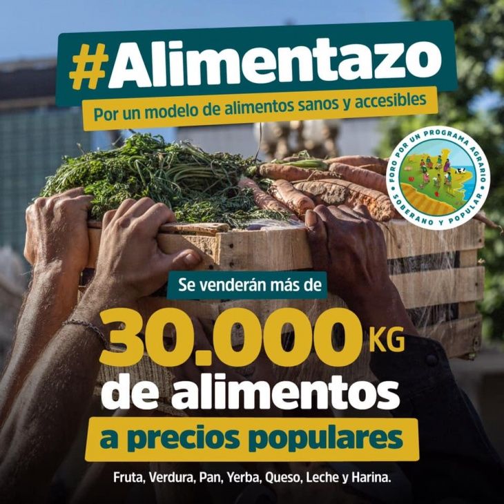 Este miércoles desde las 11 en distintos puntos del país pequeños productores realizarán un “Alimentazo”, una medida de protesta en el mismo momento que comienza una nueva edición de la Exposición Rural. La actividad consistirá en vender 30 mil kilos de alimentos a bajo precio. En la provincia de Buenos Aires se replicará en Necochea, Bahía Blanca y Mar del Plata.