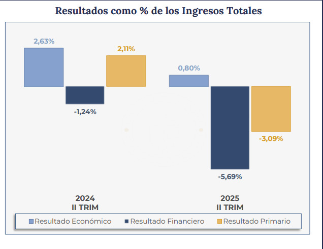 En el mismo periodo del año pasado, el resultado financiero ya había sido deficitario, pero por $127.480 millones y un ese momento representó una variación de -607,9% en comparación con el año anterior. Esto implica que a mediados de 2023, meses antes de la llegada de Javier Milei a la presidencia, la Provincia registraba un superavit financiero de aproximadamente 25 mil millones de pesos.